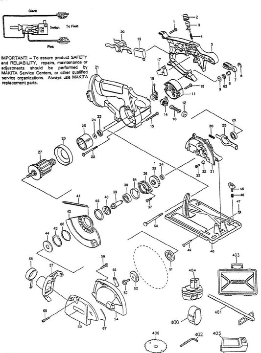 Collection: 5046DWD Cordless Circular Saw Parts By Makita