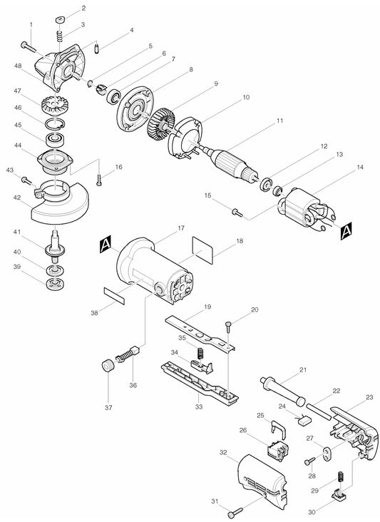 Collection: 9526PB Grinder Assembly parts By Makita