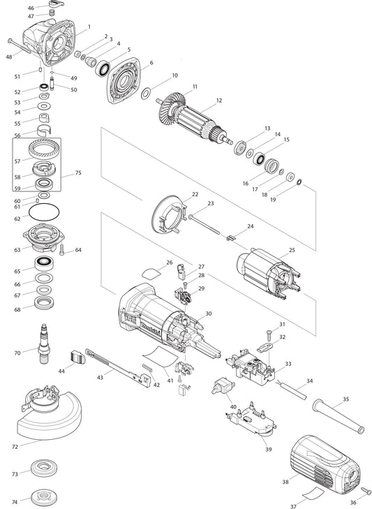 Collection: GA5042C Angle Grinder Assembly Parts By Makita