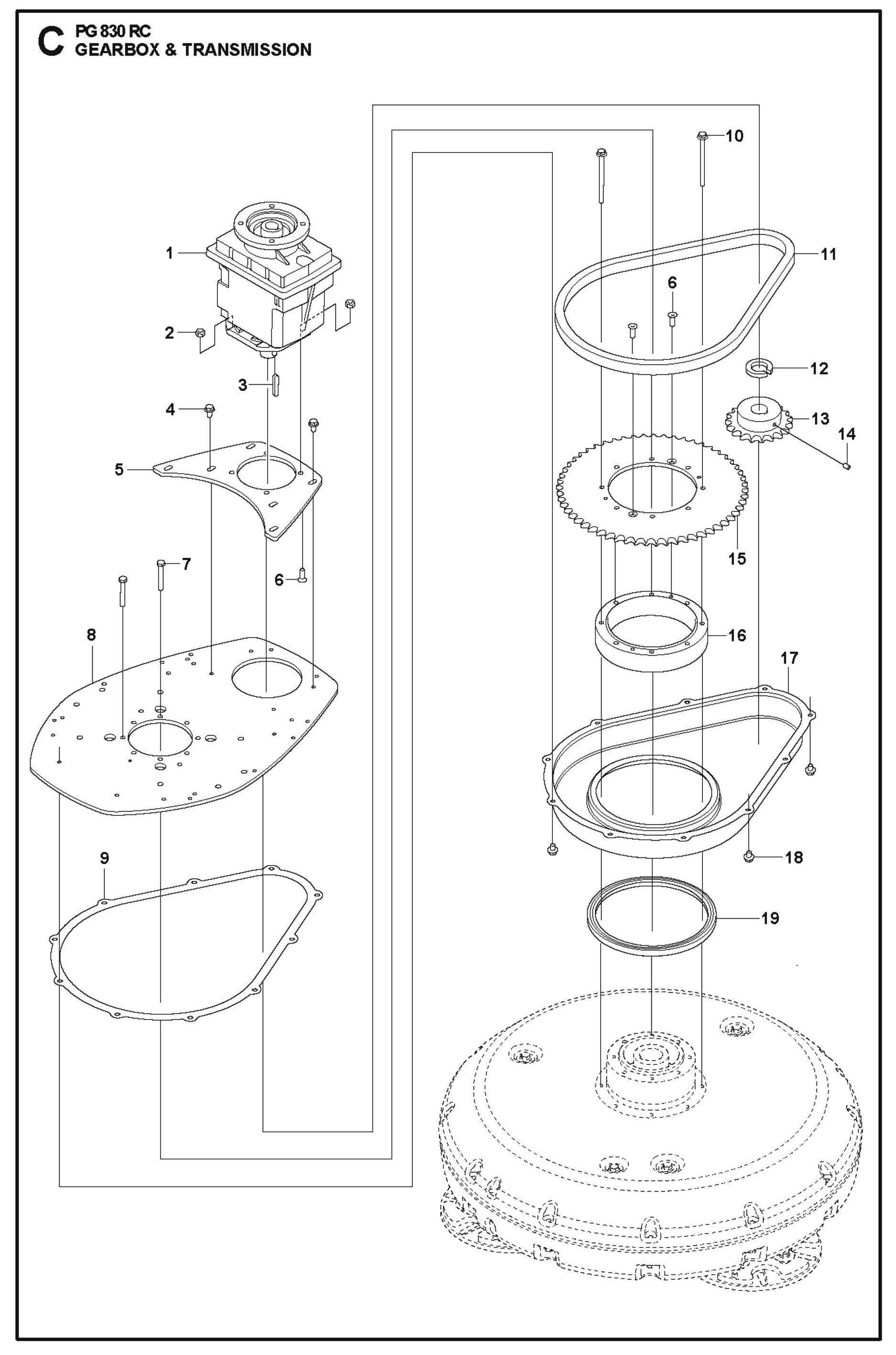 597605501 Transmission Cover for PG830RC Floor Grinder and Polisher by Husqvarna