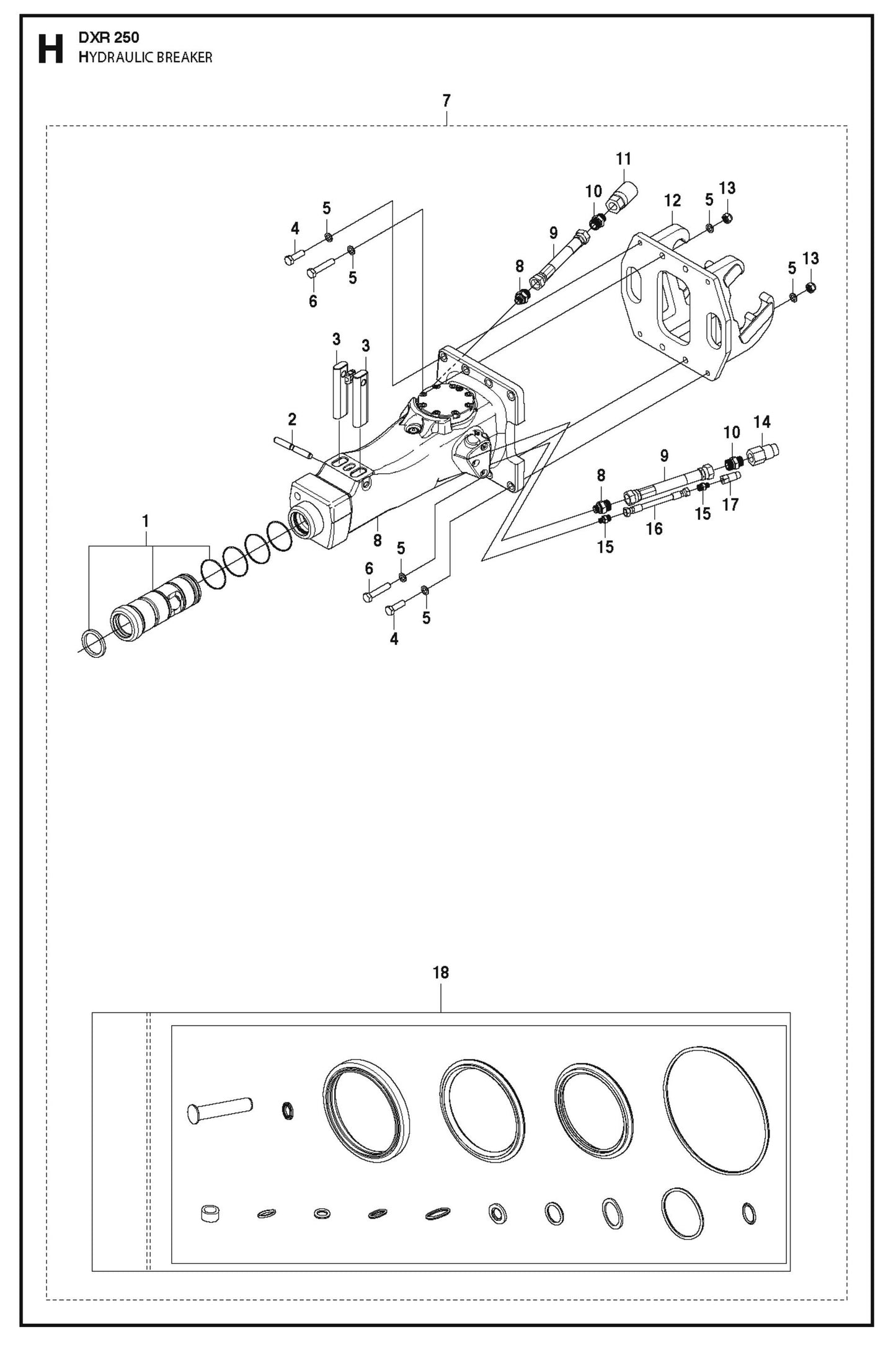 DXR 250 Hydraulic Breaker Assembly Parts